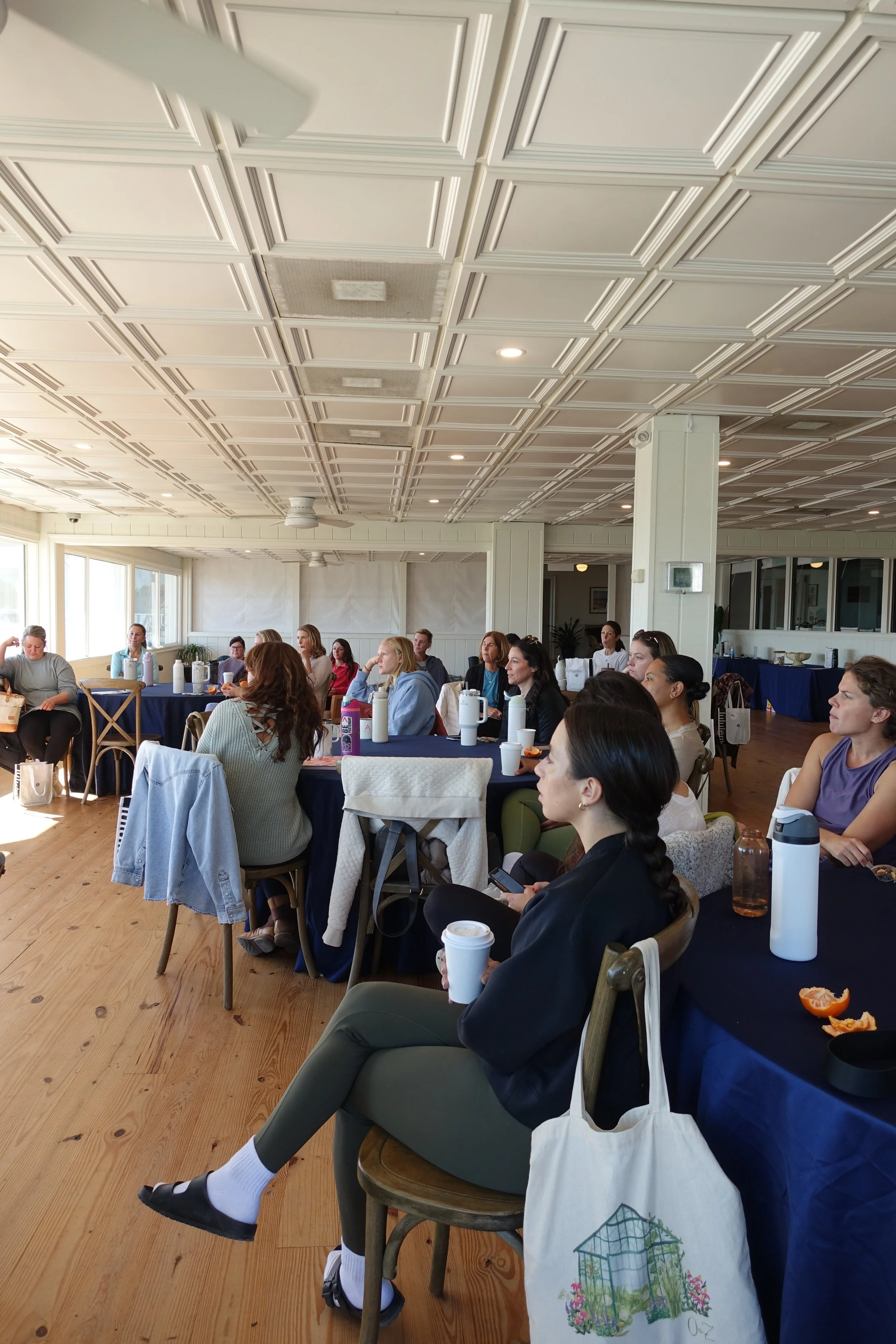 A healthy fresh meal enjoyed alongside new friends and continued conversation on wellness.